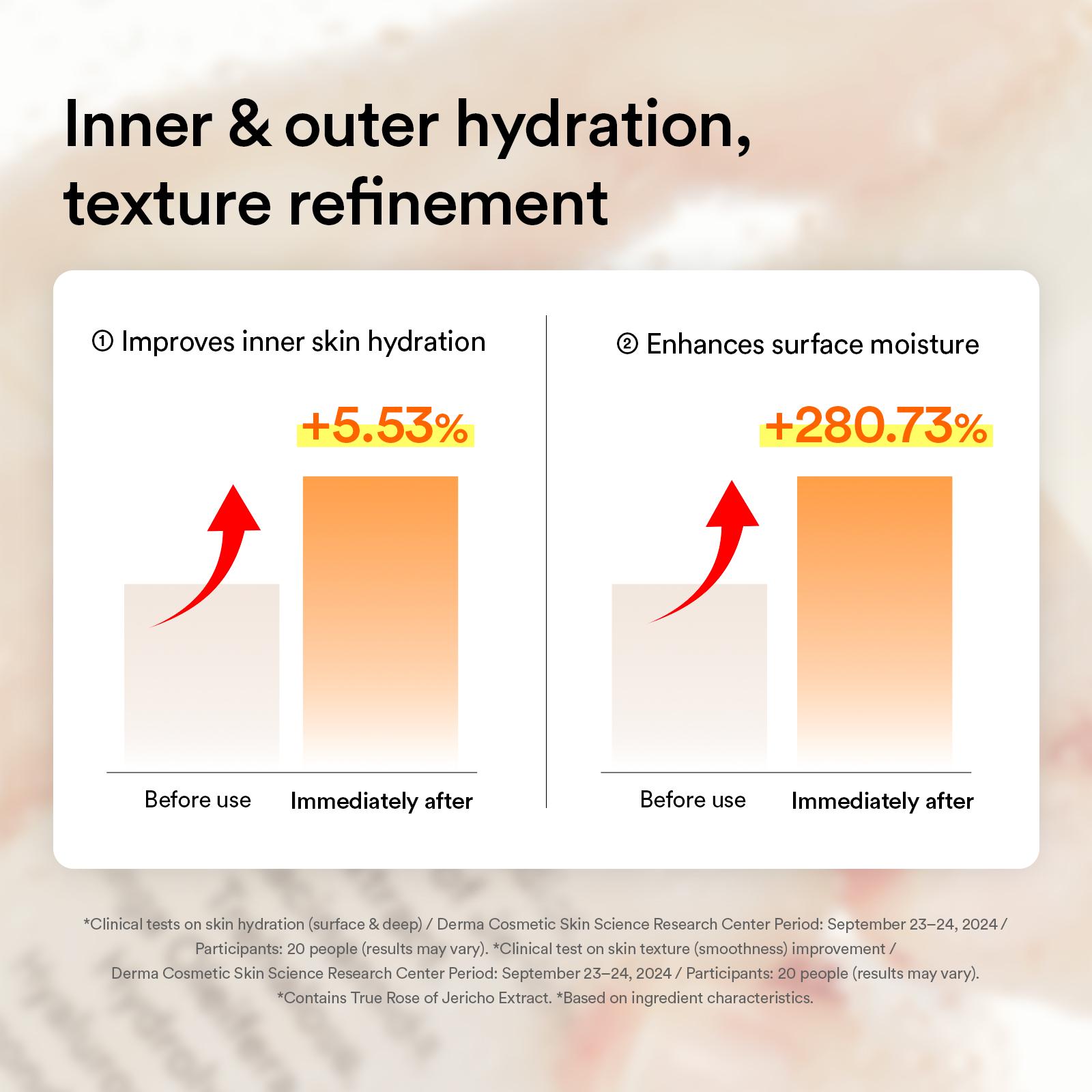 Lecithin, which is an essential component in skin, is formulated with plant-based oil with high skin affinity to provide moisturizing and glowing skin.Trehalose inside Rose of Jerico that have strong vitality quickly moisturizes deep inside skin to make smooth and hydrated skin texture.