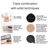 1. Take a proper amount of content with the included puff and adjust the amount on the skin-textured palette.