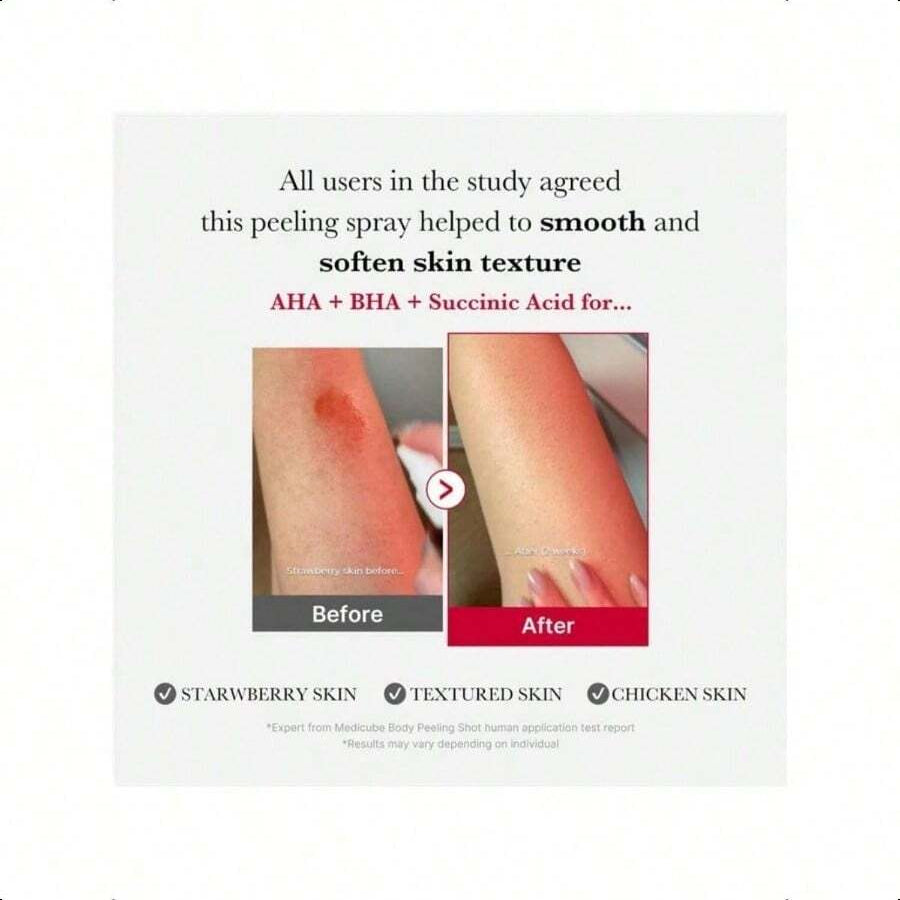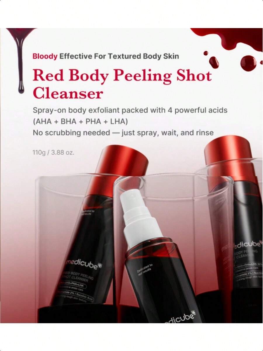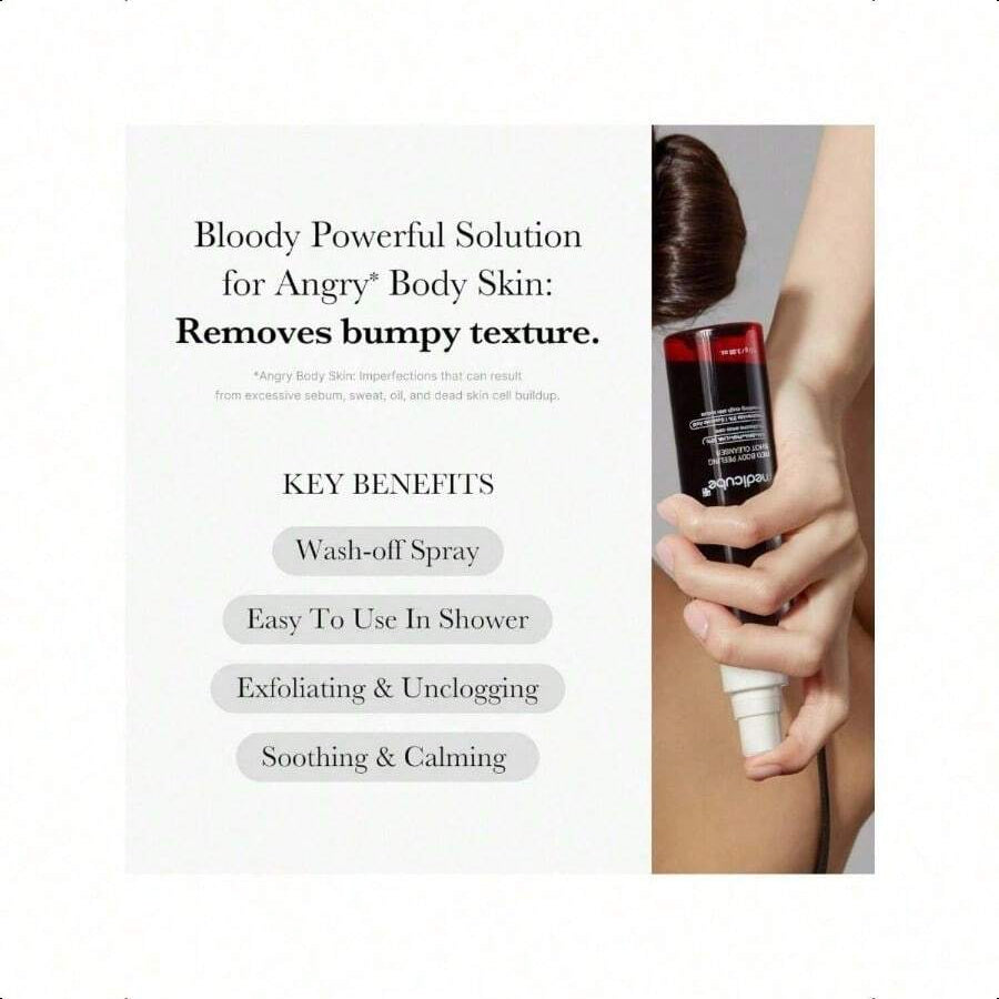 Tired of dealing with strawberry skin, body breakouts, and bumpy texture? Medicube's Red Body Peeling Shot Cleanser is here to revolutionize your body care routine. This 110g body spray cleanser is a game - changer, combining powerful exfoliating agents with a convenient spray - on design to transform your skin.